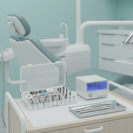 Our kit includes a wide variety of tools, from diamond burs to fine polishers, designed to cover all clinical and laboratory needs in the finishing of dental prostheses.